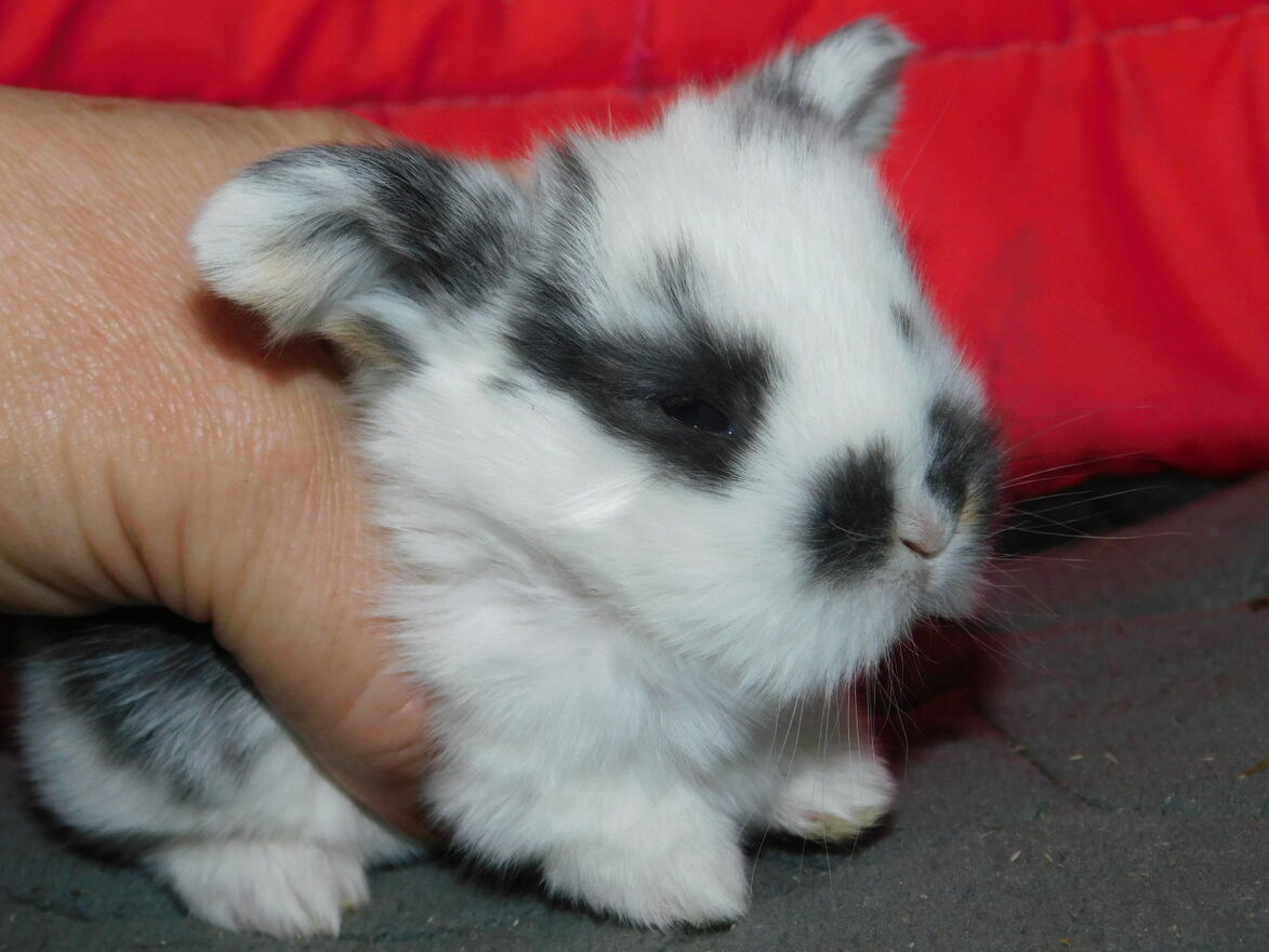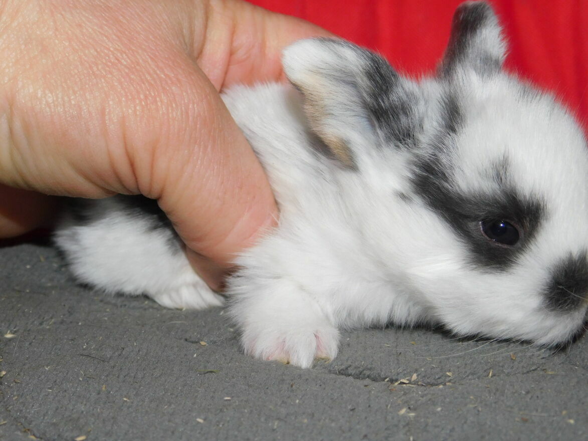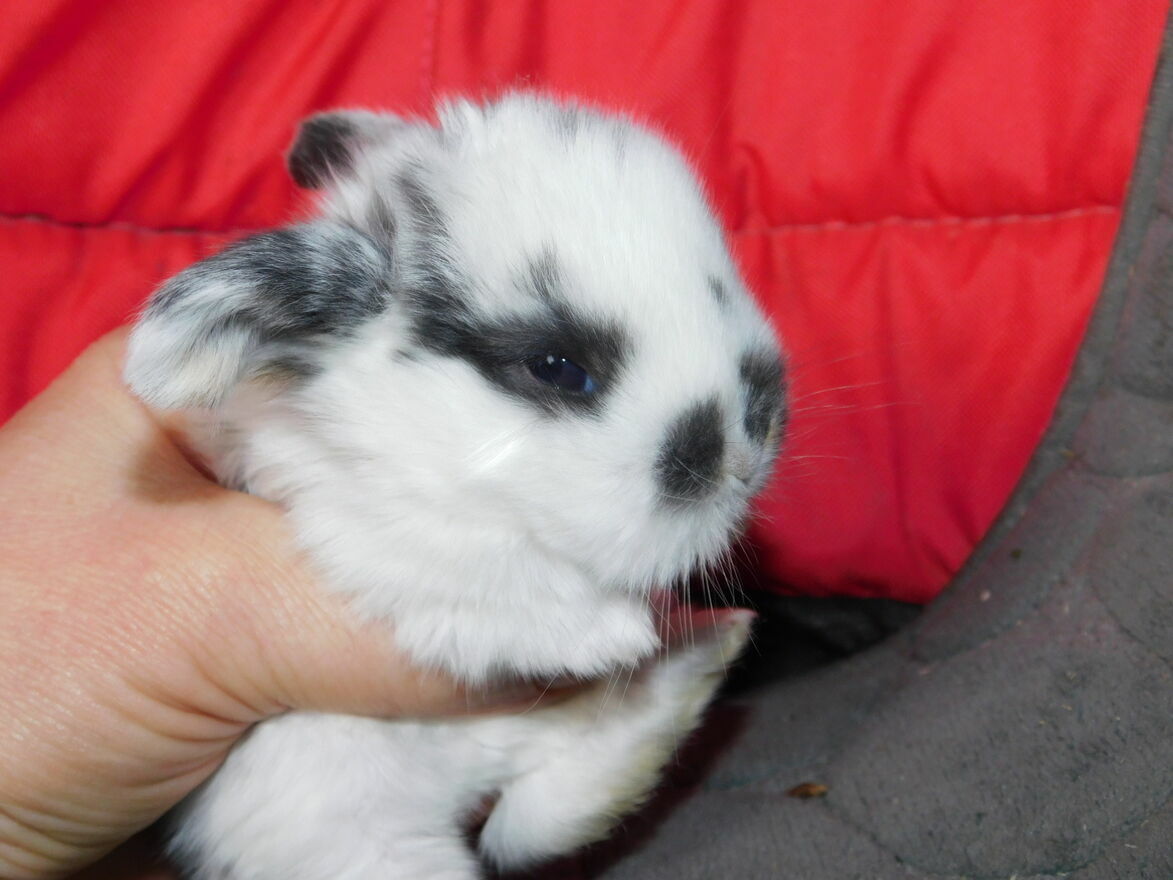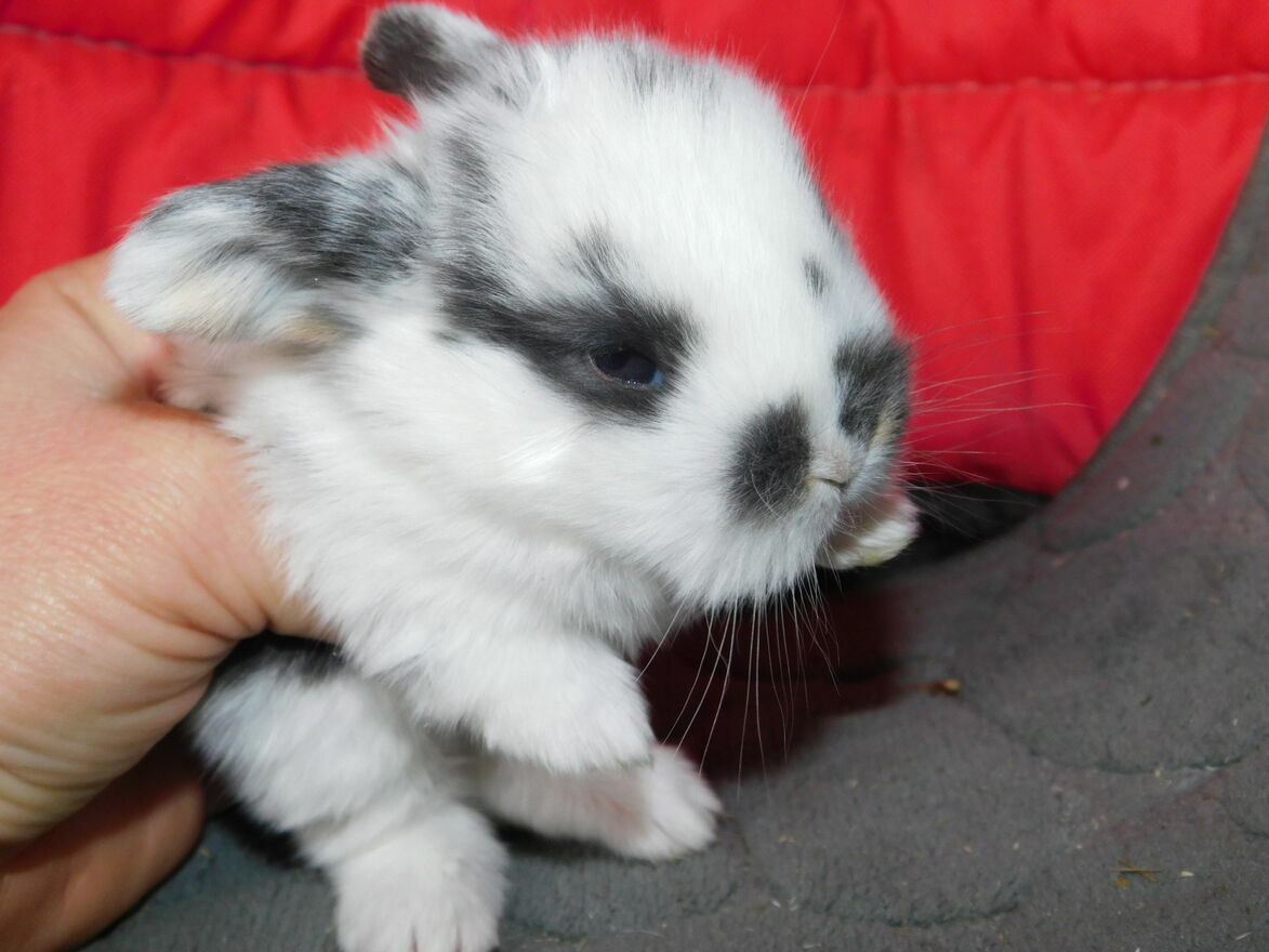 Sprzedam baranki mini lop białe z ciemną obwódką wokół oczu i na grzbiecie urodzone 13 lutego 2026 maluchy do odbioru w marcu .Irena