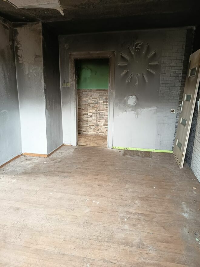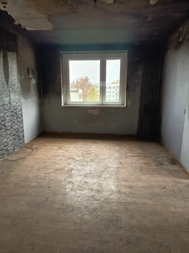 Mieszkanie ucierpiało w niewielkim pożarze (najbardziej 1 pokój), po którym zostały wymienione okna oraz drzwi wejściowe).