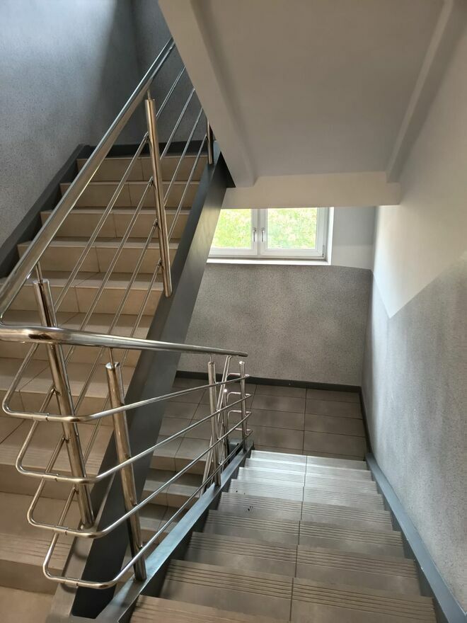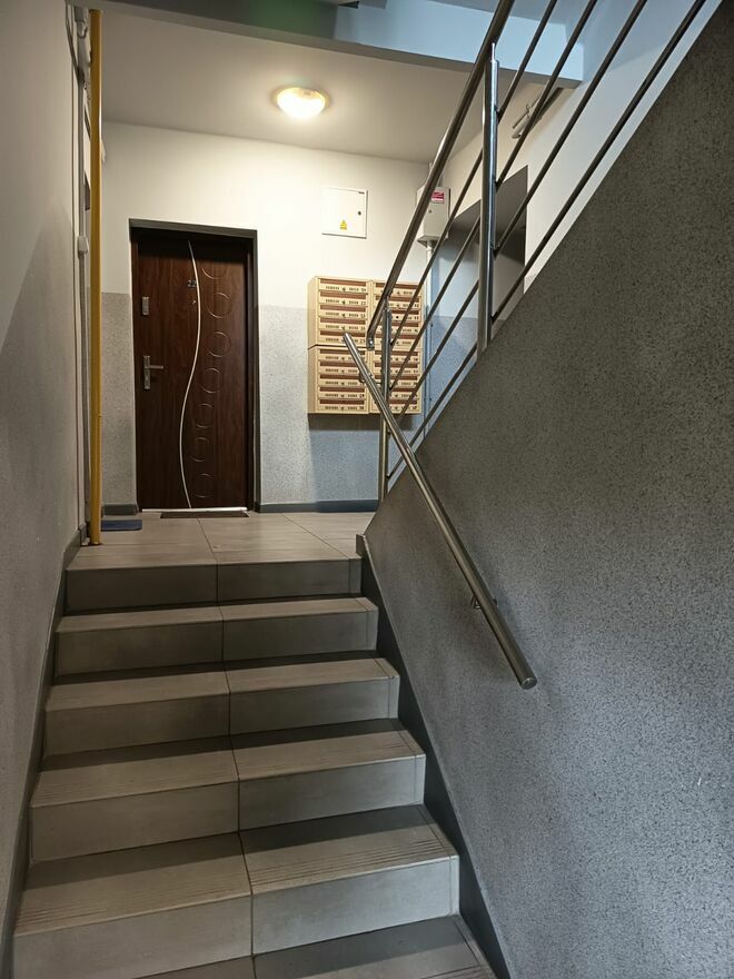 Bardzo zadbana klatka schodowa, blok po termomodernizacji.